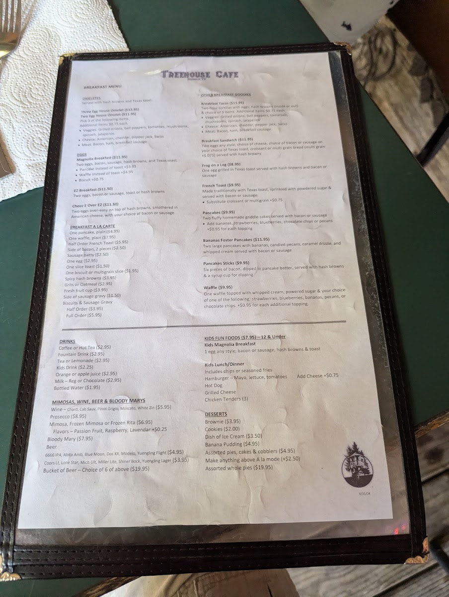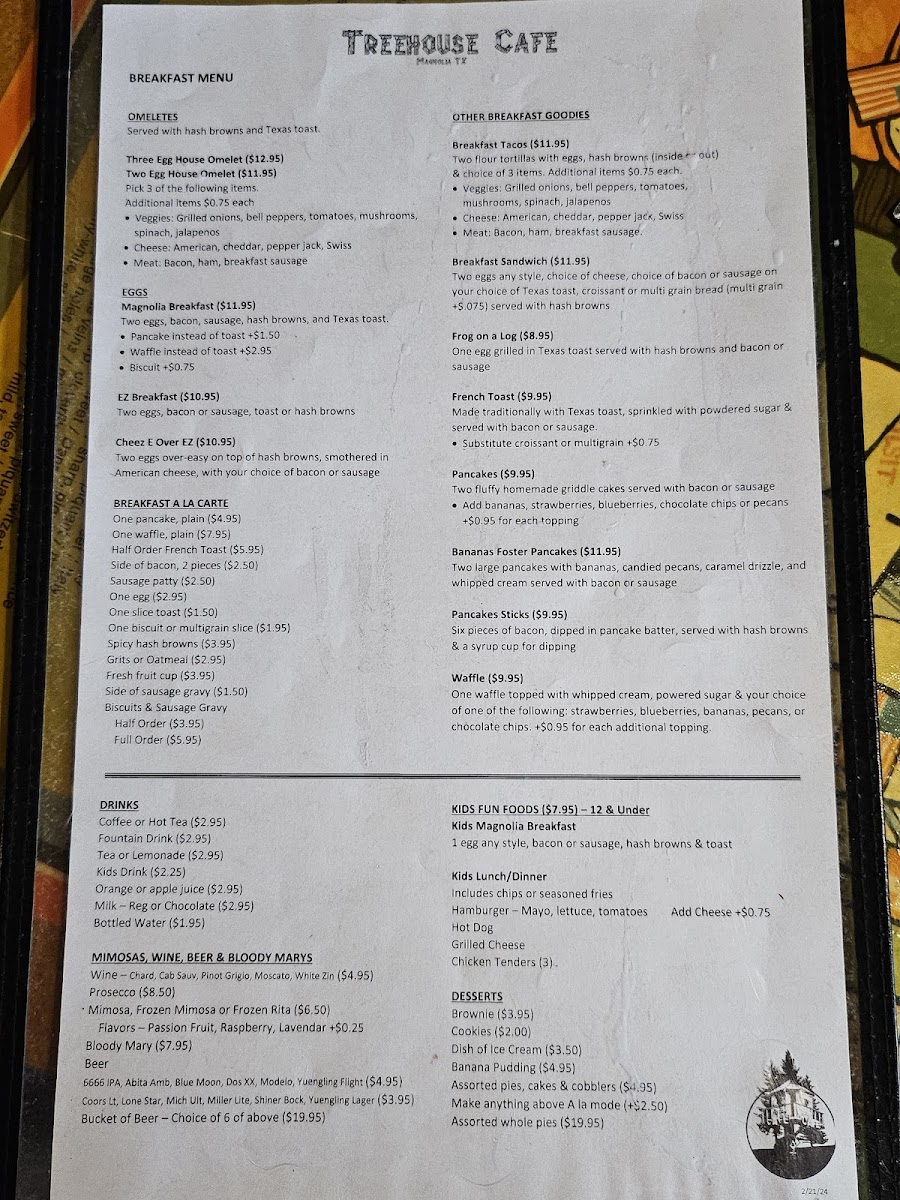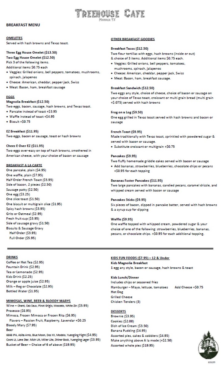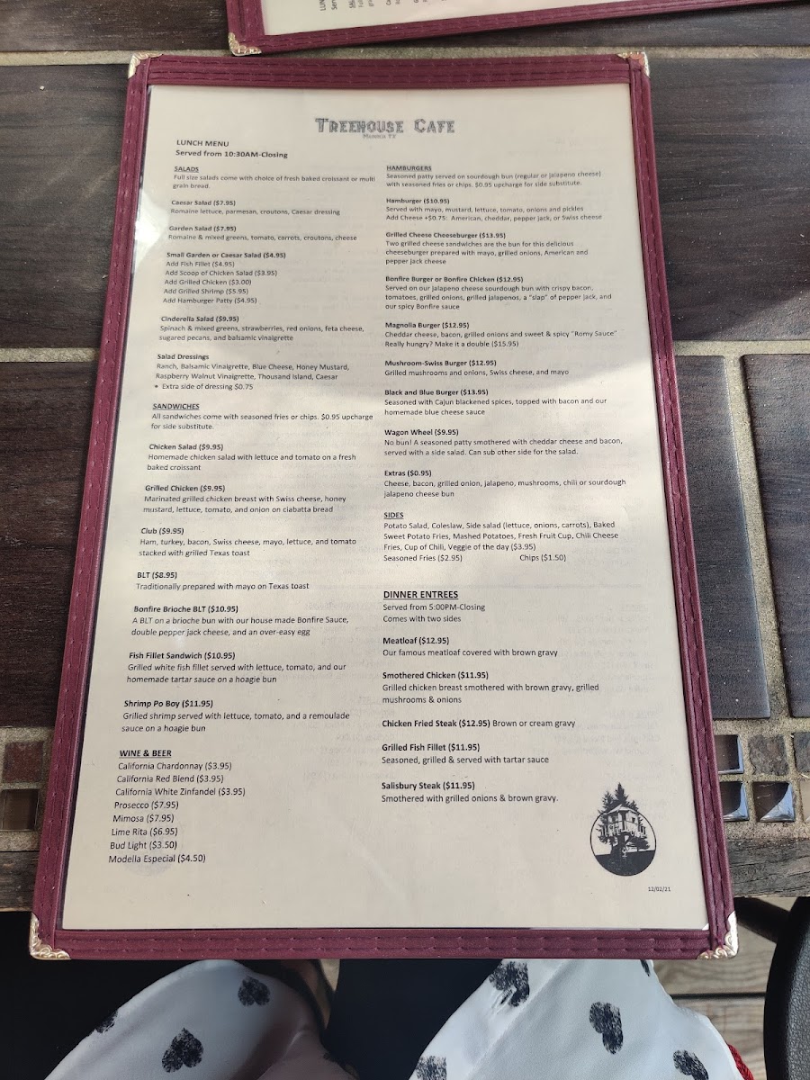 The Treehouse Cafe Menu